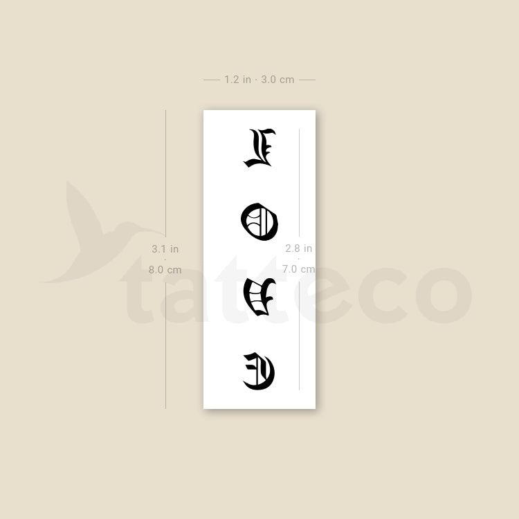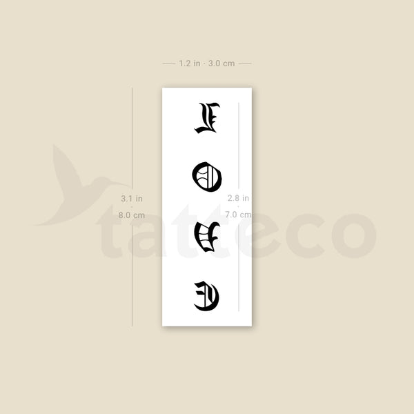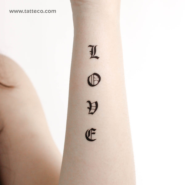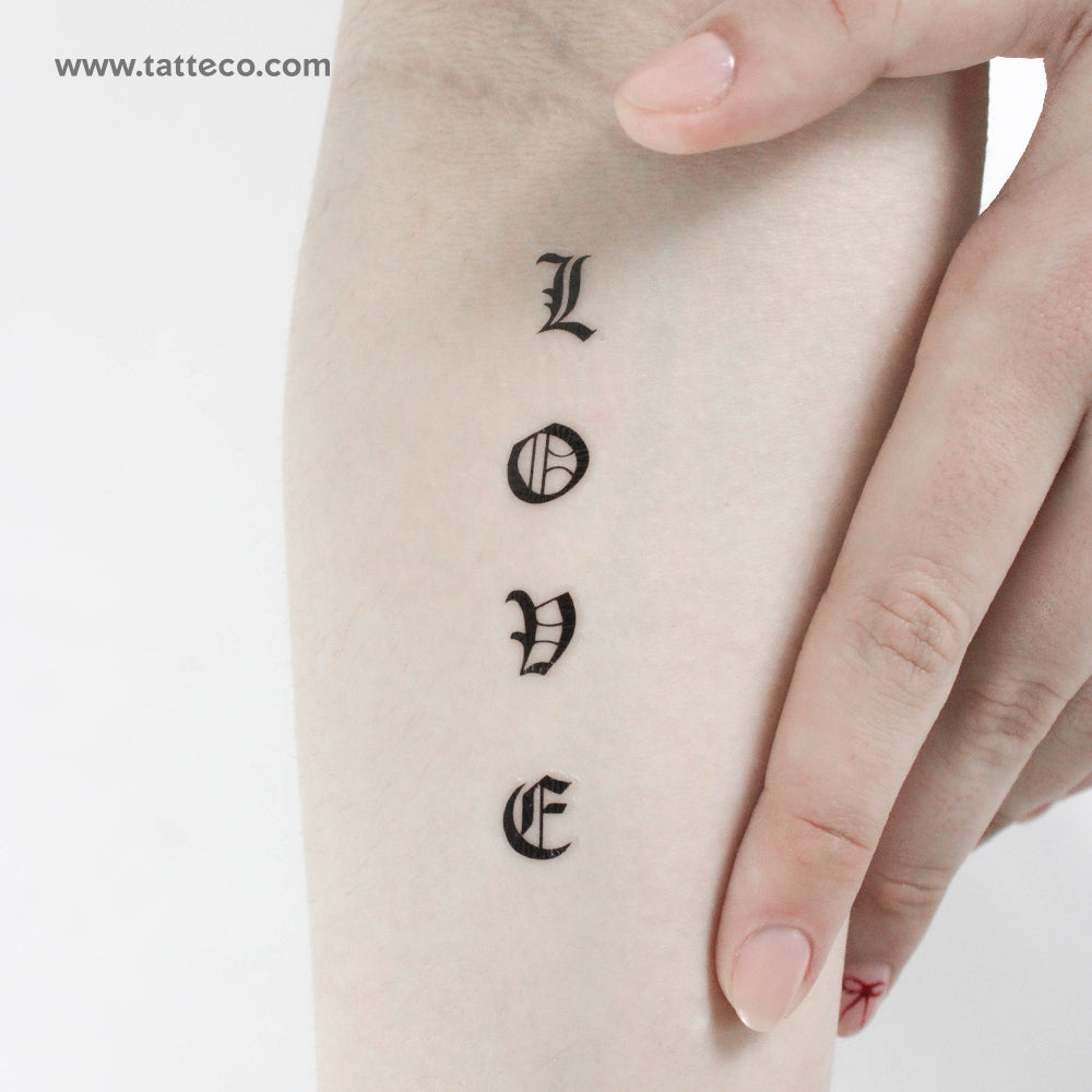 Gothic font style 'Love' temporary tattoo.