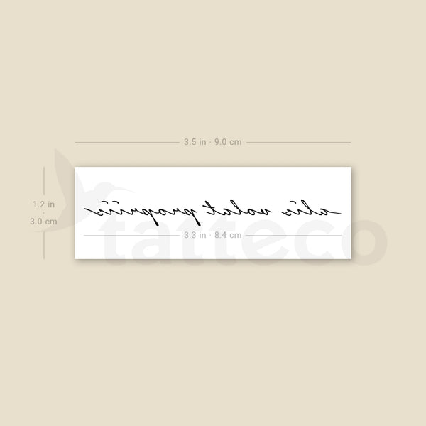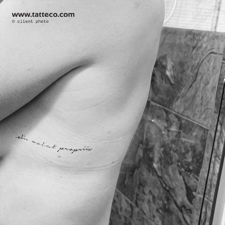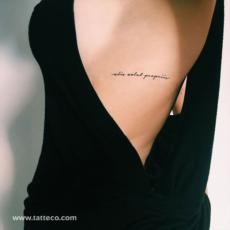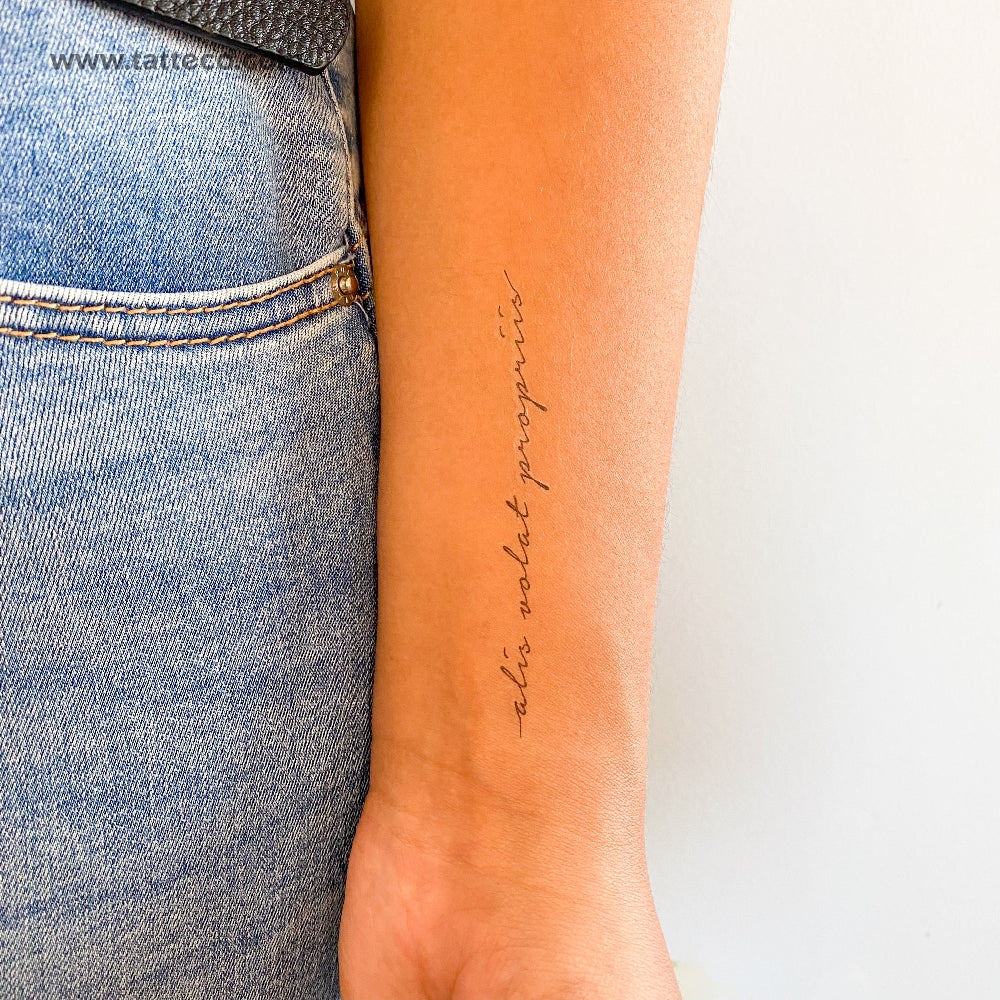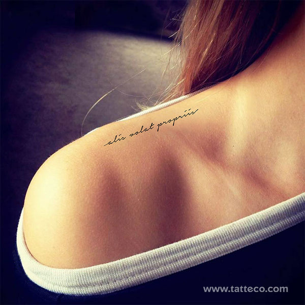 'Alis Volat Propriis' handwritten script temporary tattoo.
