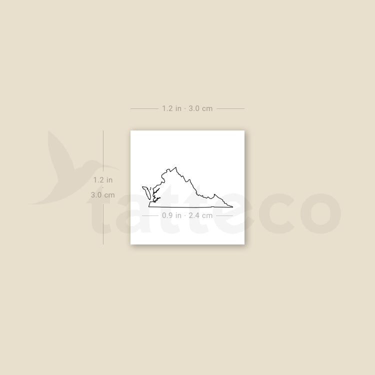 Virginia Map Outline Temporary Tattoo - Set of 3