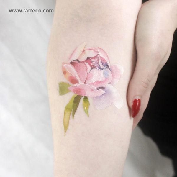 Light pink peony temporary tattoo by Ann Lilya.