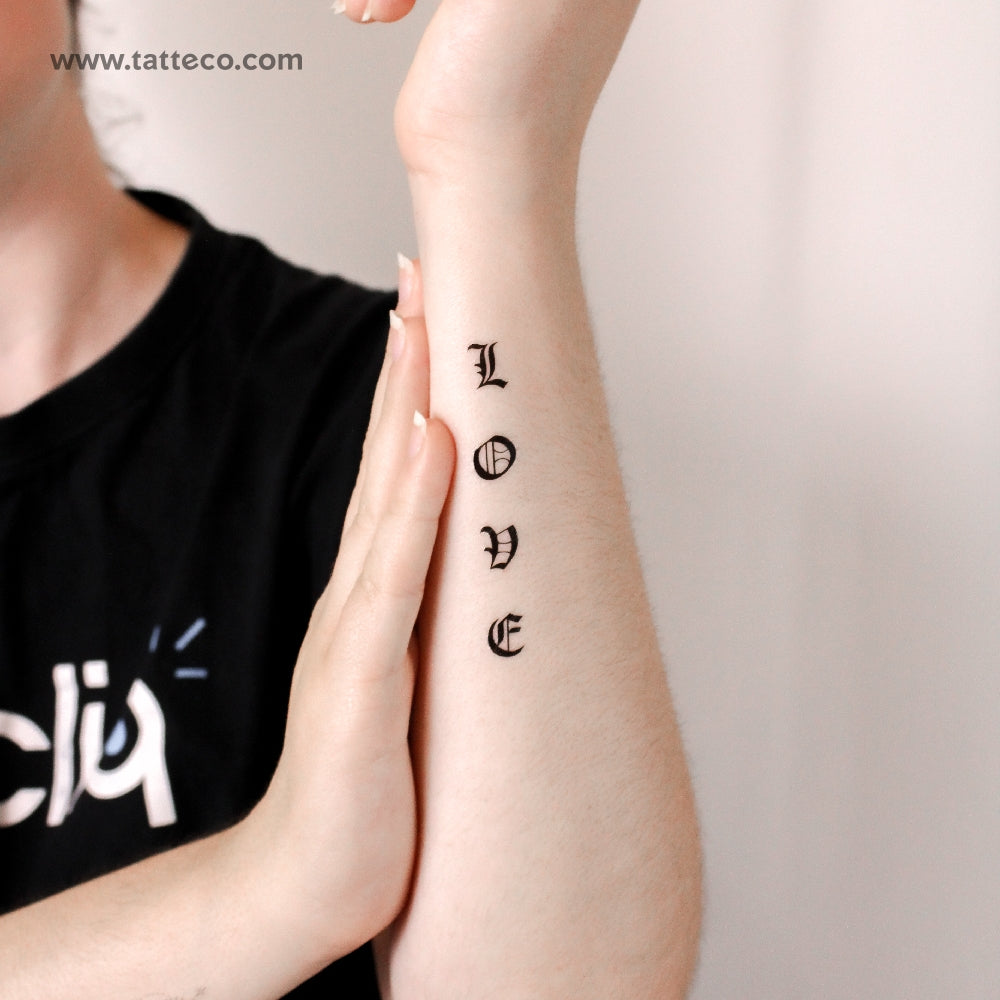 Gothic font style 'Love' temporary tattoo.