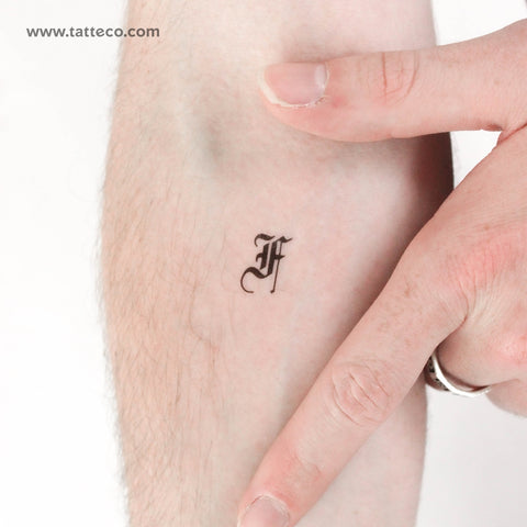 Small gothic F letter outline temporary tattoos.