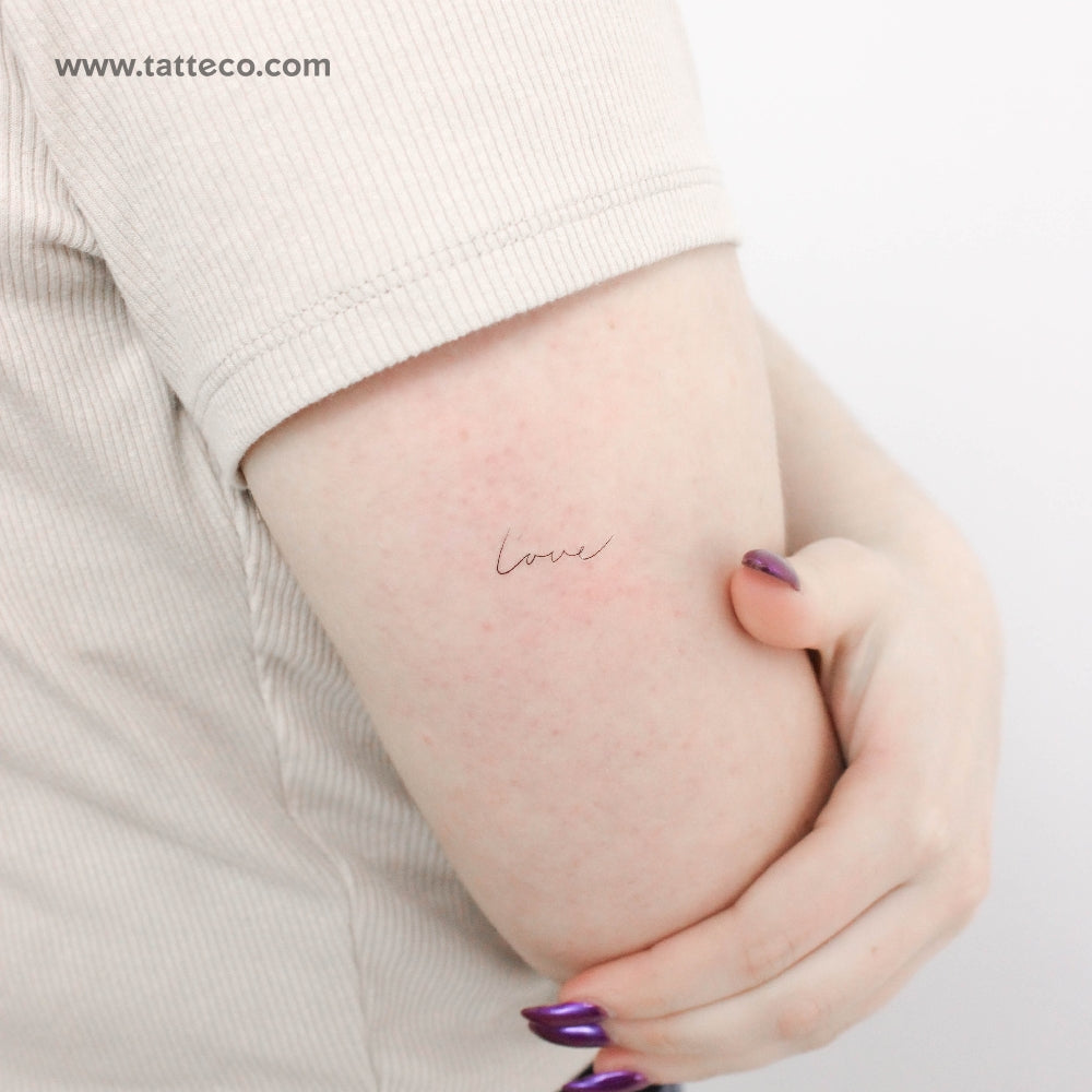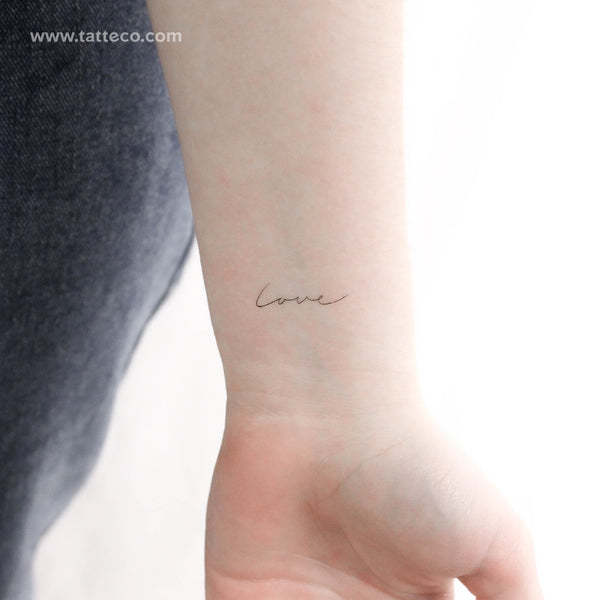The word "love" is perhaps the most versatile in the English language. It can be used to express everything from the most tender of emotions to the most profound of spiritual connections. As a result, it is not surprising that so many people choose to get this word tattooed on their skin. Our handwritten ‘love’ temporary tattoo provides the best way to try out this concept before getting inked.