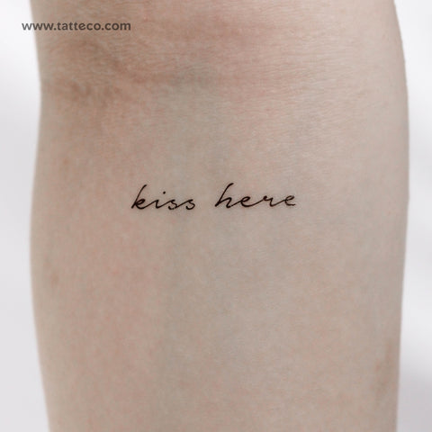 Kissing is a way to express the way we feel about other people. Whether it’s a family member, friend, or romantic partner, we only kiss people who we love and want to keep close, so this gesture is also a symbol of trust. Our temporary “Kiss Here” tattoo is a versatile choice that allows you to show your more sensitive side.