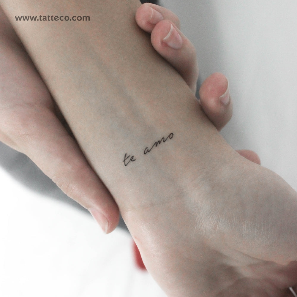 Handwritten font style te amo (Spanish for I love you) temporary tattoo.