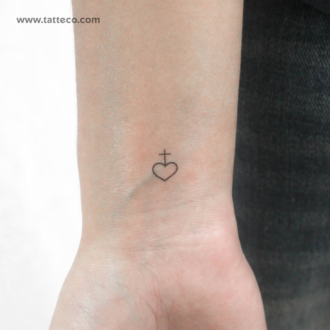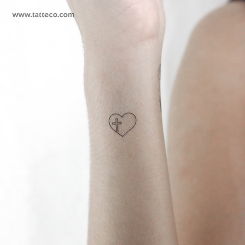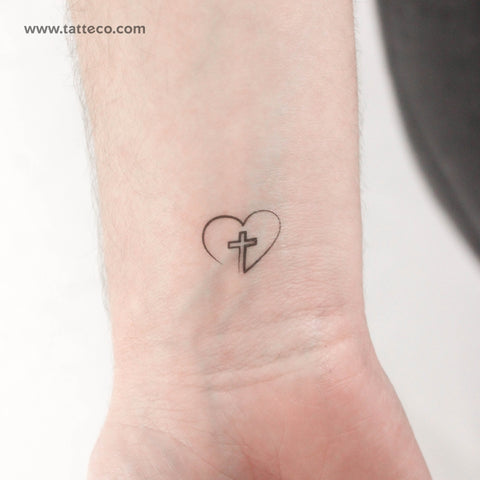 Cross Inside Heart Temporary Tattoo - Set of 3