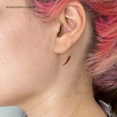 Red Fine Line Chili Temporary Tattoo - Set of 3