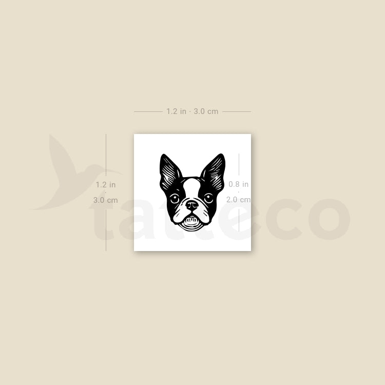 Boston Terrier Portrait Temporary Tattoo - Set of 3