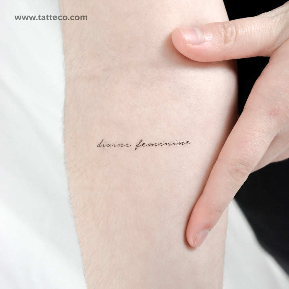Handwritten font style divine feminine temporary tattoo.