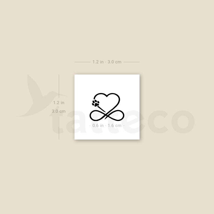 Dog Paw Print Infinity Heart temporary tattoo.