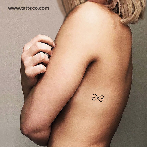 This fine line infinity hearts temporary tattoo could also be used to honor the memory of a lost loved one. In doing so, the wearer shows that the love for this person continues and that their memory will never be forgotten.