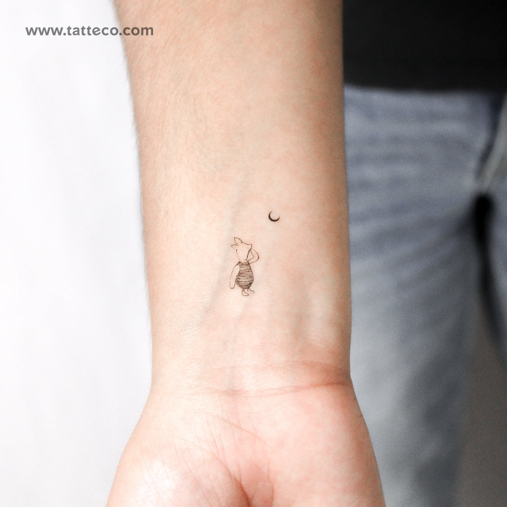 Piglet Looking At Moon Temporary Tattoo - Set of 3