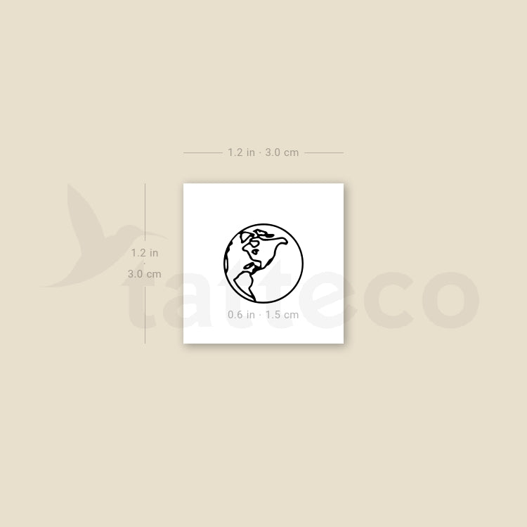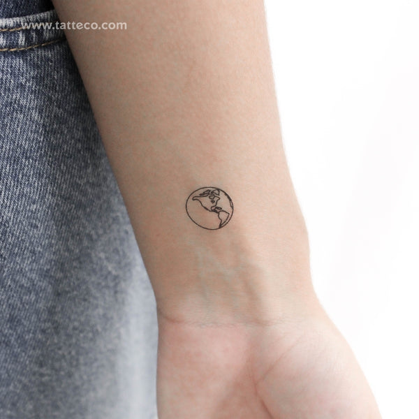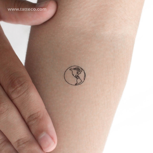 Small fine line style Earth (America) temporary tattoo.