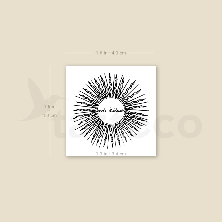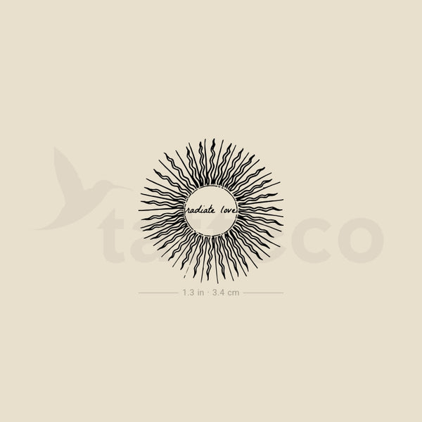 Radiate Love Sun temporary tattoo.