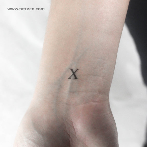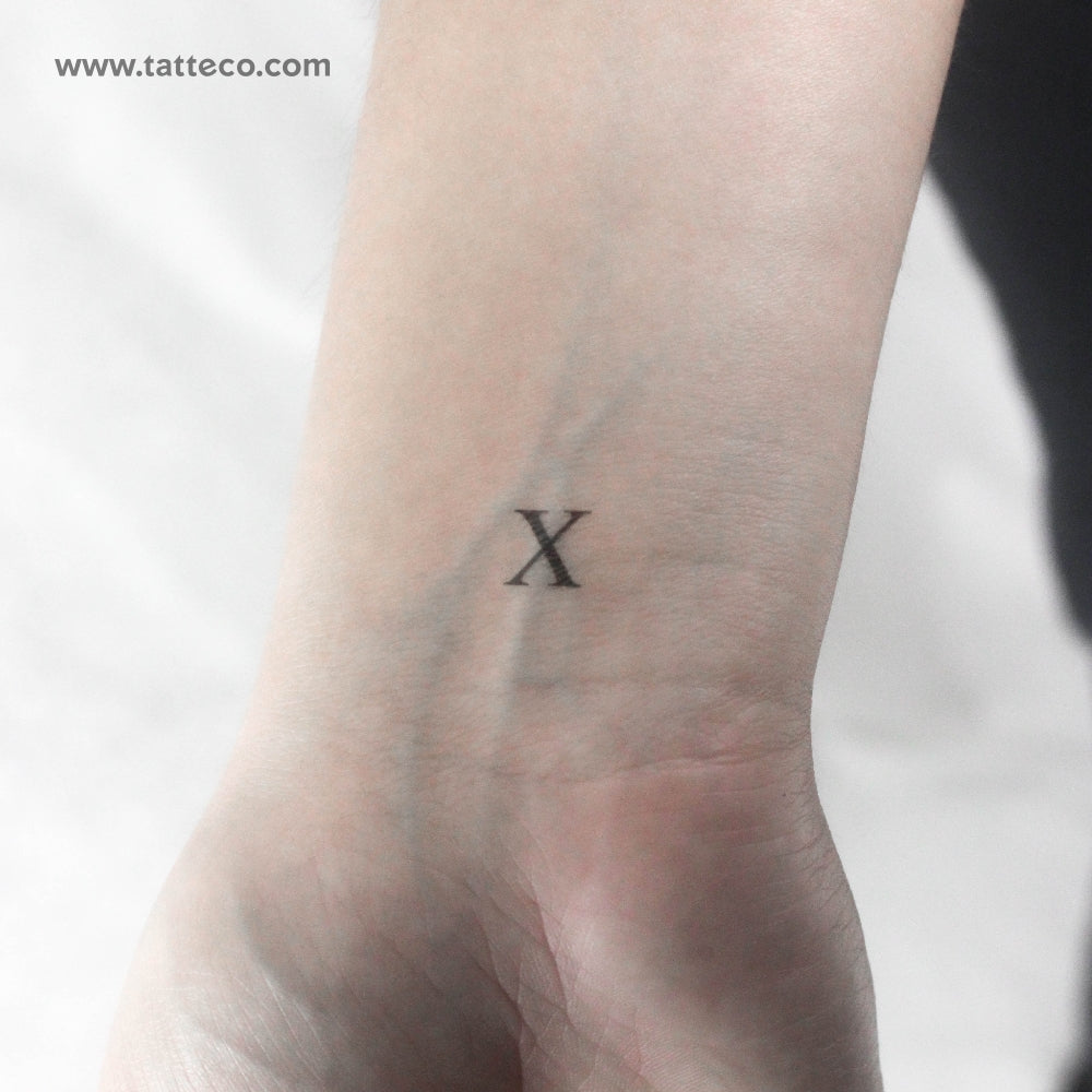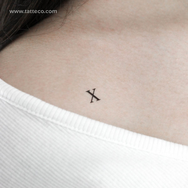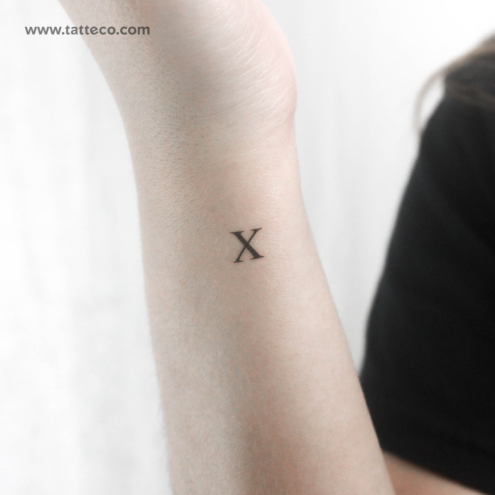 Serif capital X letter temporary tattoo.