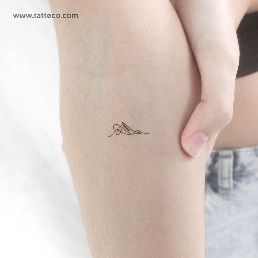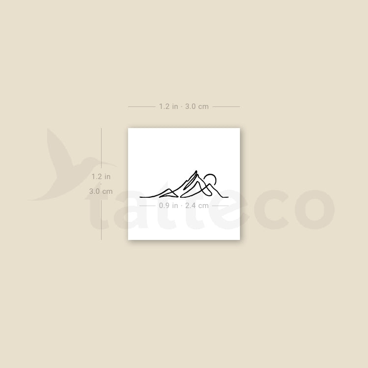 Single Line Mountain Sunset Temporary Tattoo - Set of 3