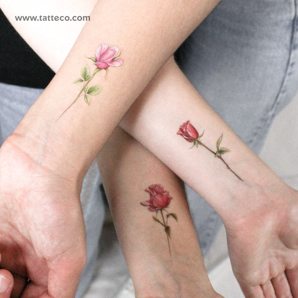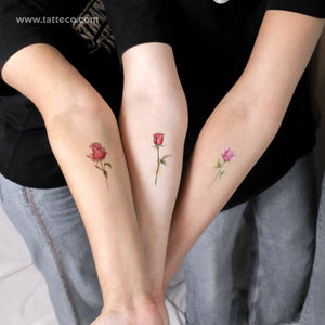 Our three roses temporary tattoo set offers you three beautiful roses to try so you can figure out what style suits you best. These three rose fake tattoos were designed in collaboration with Mini Lau, a talented tattoo artist who is based in Hong Kong. Specializing in full-color floral tattoos, she is well-known for her small and intricate creations.