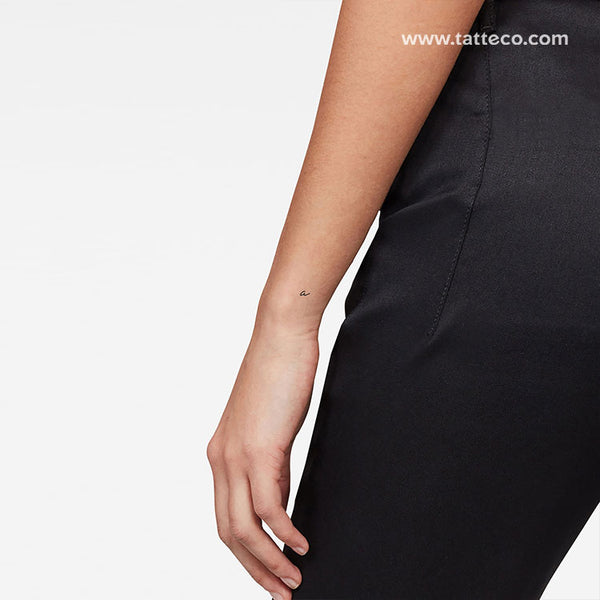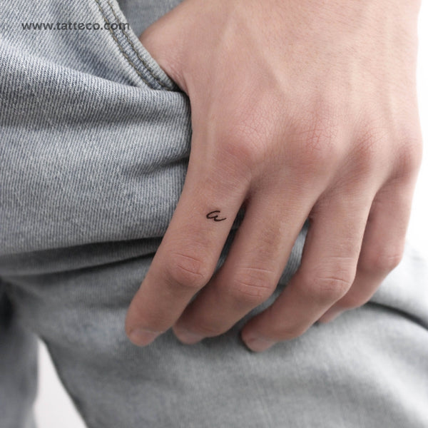 Handwritten lowercase a letter temporary tattoo.