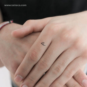 Our ‘a’ handwritten letter temporary tattoo features a lowercase ‘a’ written in a fine cursive script. The smooth lines give this fake tattoo a touch of elegance and romance. It comes in a set of three, so you can try out different locations on your body before getting permanent ink.