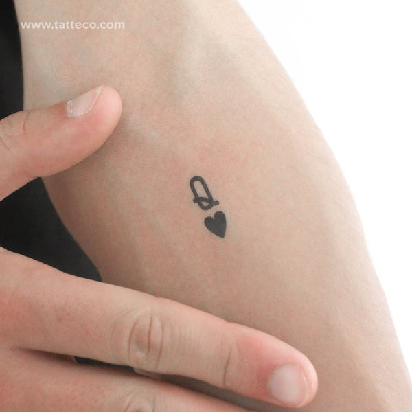 Black Queen Of Hearts Temporary Tattoo - Set of 3