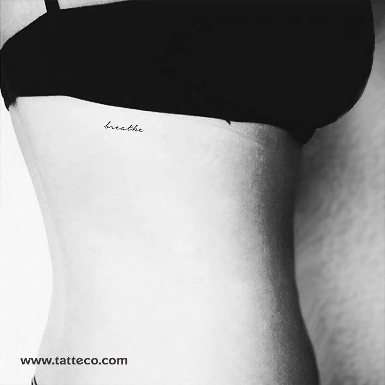 Minimalist 'breathe' handwritten script temporary tattoo.
