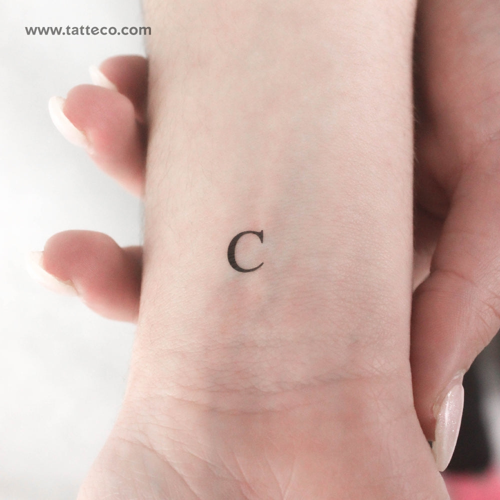 C Serif Capital Letter Temporary Tattoo - Set of 3