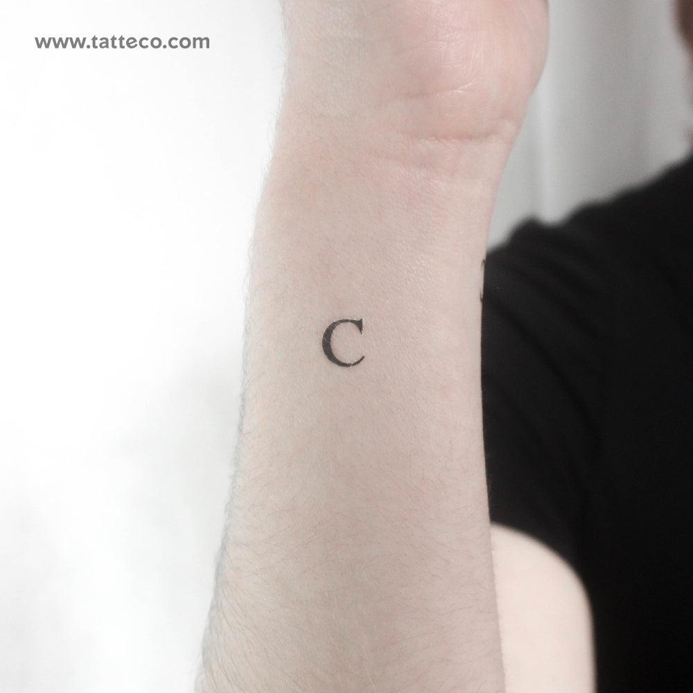 Serif capital C letter temporary tattoo.