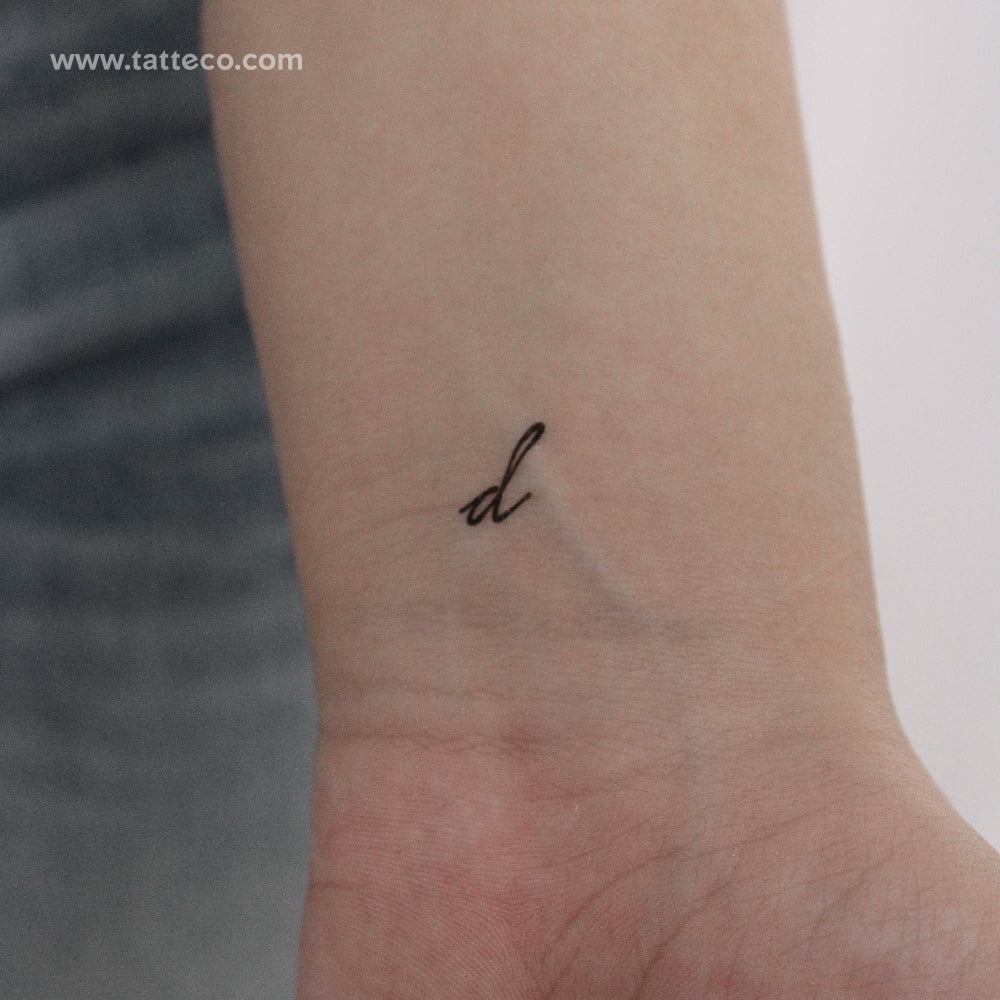This d handwritten letter temporary tattoo is a tiny and unimposing letter tattoo. Written in lowercase, it has a low-key appearance that will only attract attention if you want it to. With its graceful curves and loops, this d fake tattoo will add a touch of elegance wherever you place it.