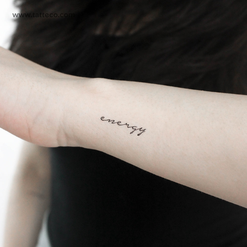 Handwritten font 'energy' temporary tattoo.