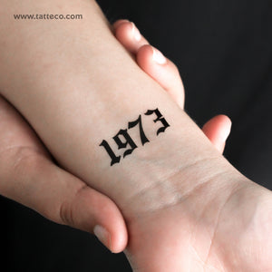 Gothic 1973 birth year temporary tattoo.