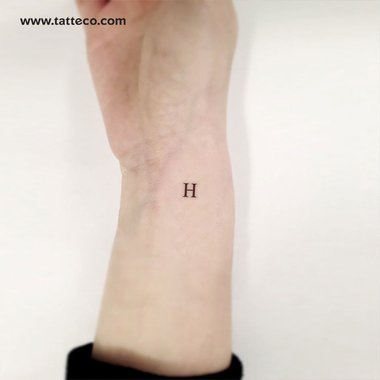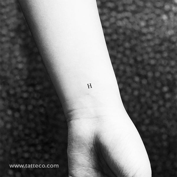 Serif capital H letter temporary tattoo.