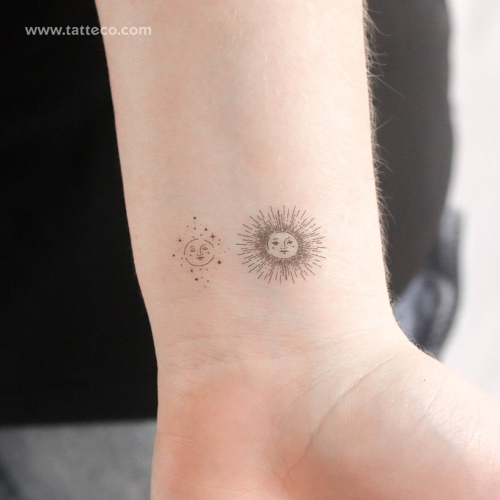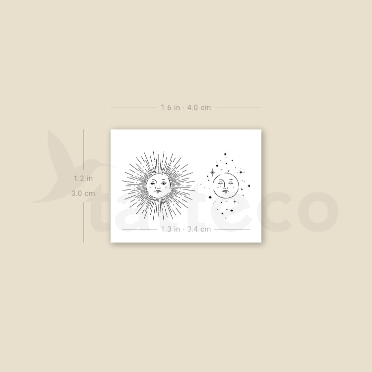Happy Sun, Sleepy Moon Temporary Tattoo - Set of 3