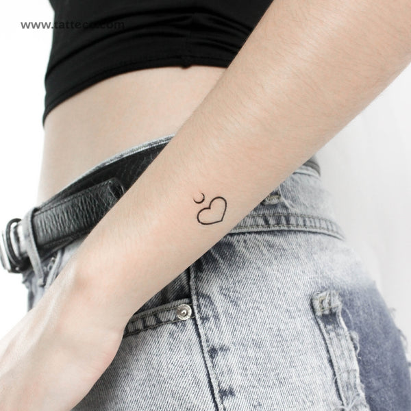 Small heart and moon temporary tattoo.