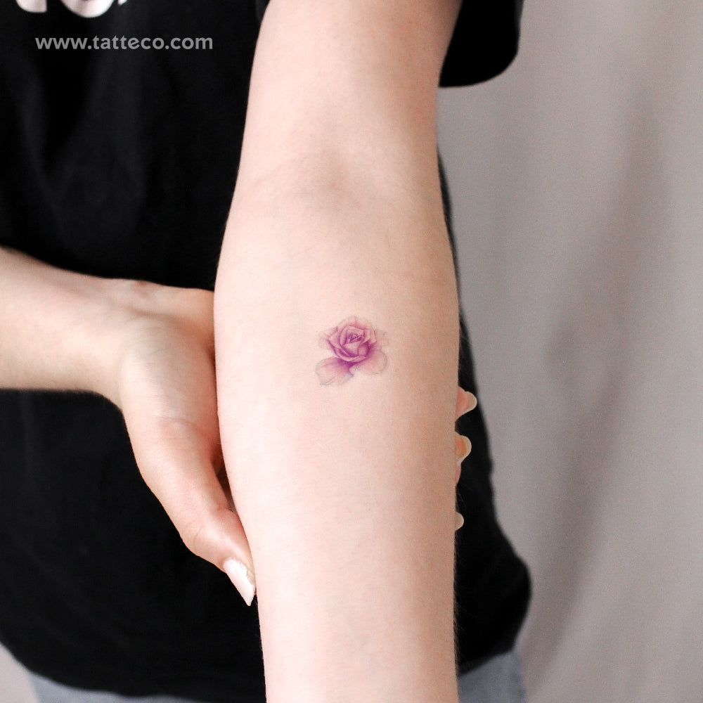 Illustrative Purple Rose Head Temporary Tattoo - Set of 3