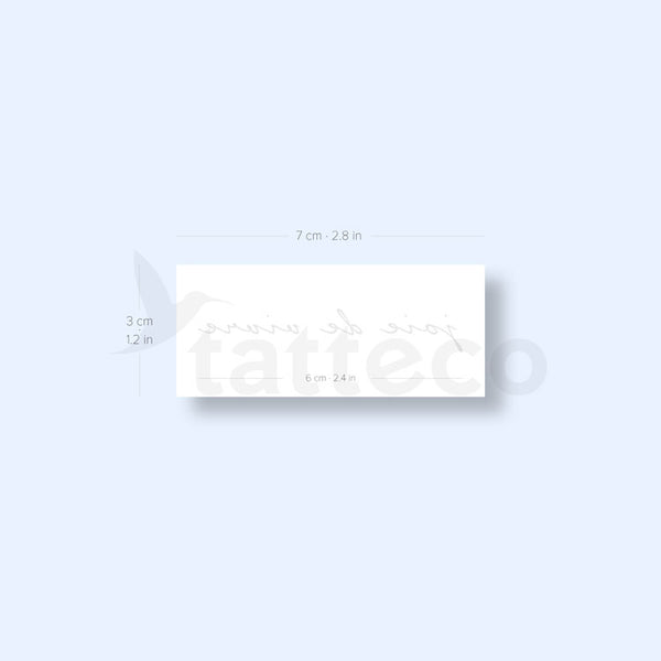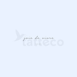 This plastic-free ‘joie de vivre’ semi-permanent fake tattoo could be chosen by someone who wants the world to understand their positive and carefree approach to life. In contrast to the common English idiom "life is too short," joie de vivre suggests that life is something to be savored, not rushed through.