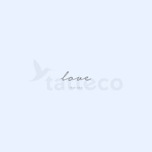 Whatever your motivation, we know you’ll enjoy trying out this lovely design. Created with a flowing cursive script, our handwritten ‘love’ long-lasting tattoo will have an elegant appearance on your skin. For other options, browse our entire collection of word 2-week temporary tattoos.