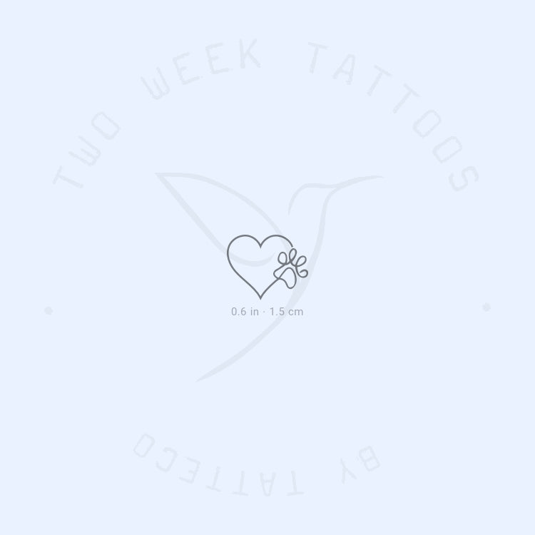 One Line Paw Heart Semi-Permanent Tattoo - Set of 2
