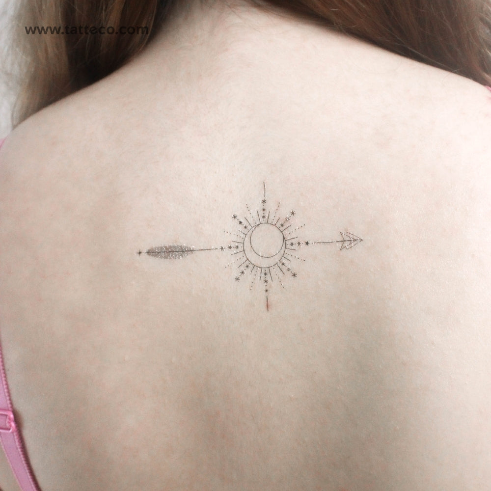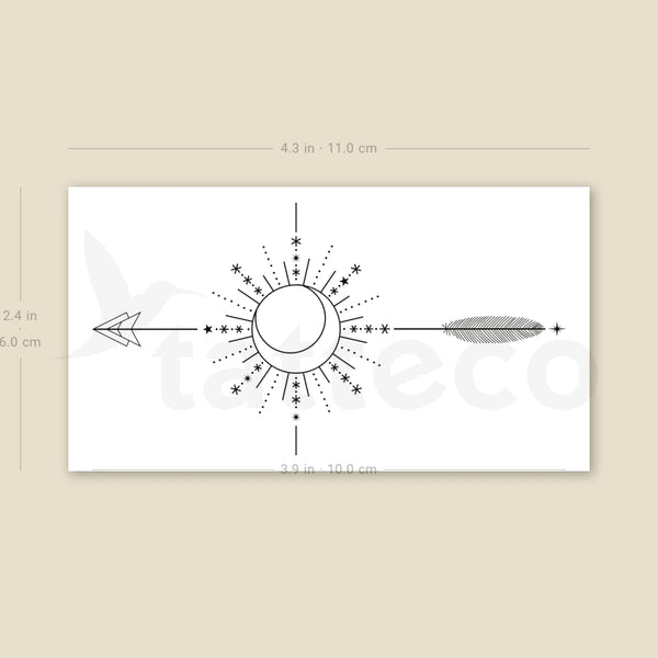 Elegant, minimalist, and truly magnificent, our ornamental arrow compass temporary tattoo is a fine line piece that includes a huge amount of detail in every element. Created using high-quality, non-toxic materials, this piece is the perfect green alternative for the environmentally conscious out there. Plastic-free and delivered to you in 100% paper packaging, we provide three pieces with every order so that you can test out your design on different parts of the body or share them with friends.
