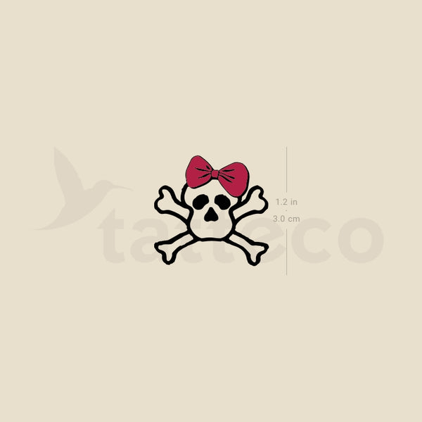 Skull with a pink bow temporary tattoo, inspired by Riri's ankle tattoo.