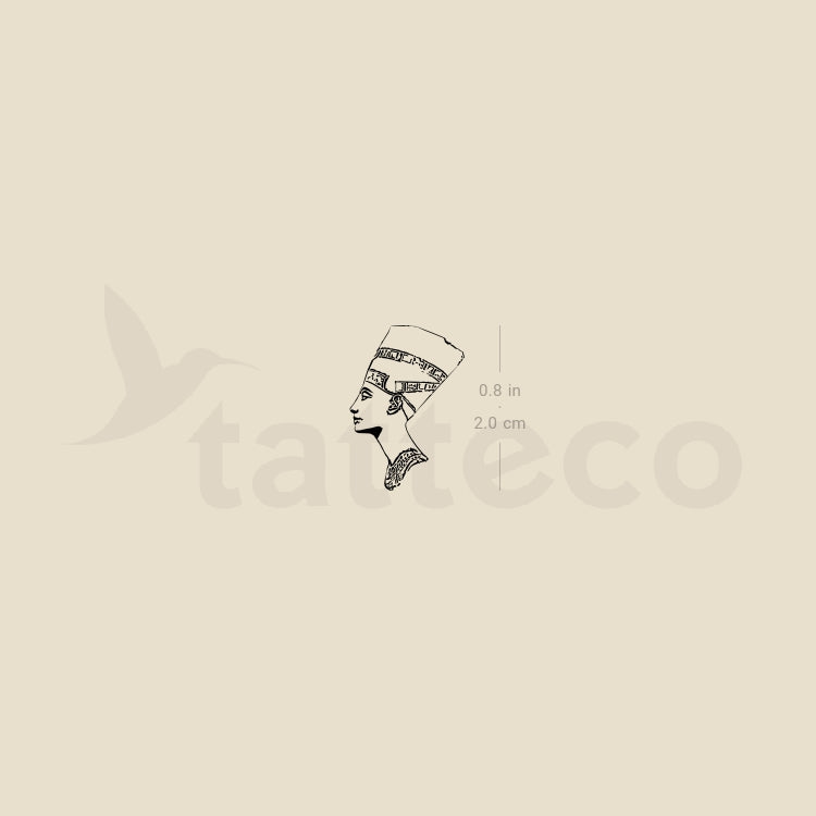 Small Neferneferuaten Nefertiti bust silhouette temporary tattoo, the queen of the 18th Dynasty of Ancient Egypt.