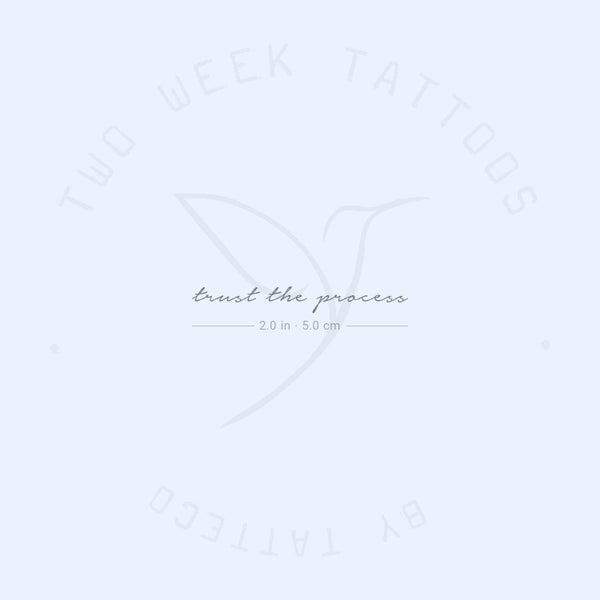 More than simply being patient and optimistic, the ‘trust the process’ long-lasting temporary tattoo also symbolizes persistence and confidence when experiencing moments of uncertainty. Although things may seem hard at times, it’s the difficulties in the journey that make one appreciate the happy ending.